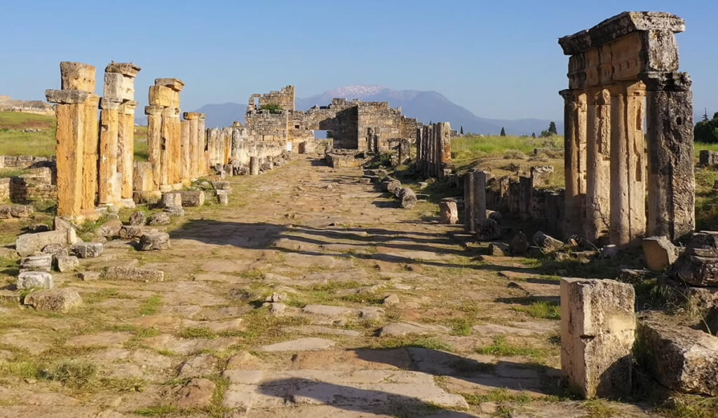 Ngay trên đỉnh Pamukkale là Hierapolis, thành phố cổ có lịch sử hơn 2.000 năm. Được người Hy Lạp xây dựng và phát triển rực rỡ dưới thời La Mã, nơi đây từng là trung tâm văn hóa – tín ngưỡng quan trọng nhờ những suối khoáng chữa bệnh thần kỳ.